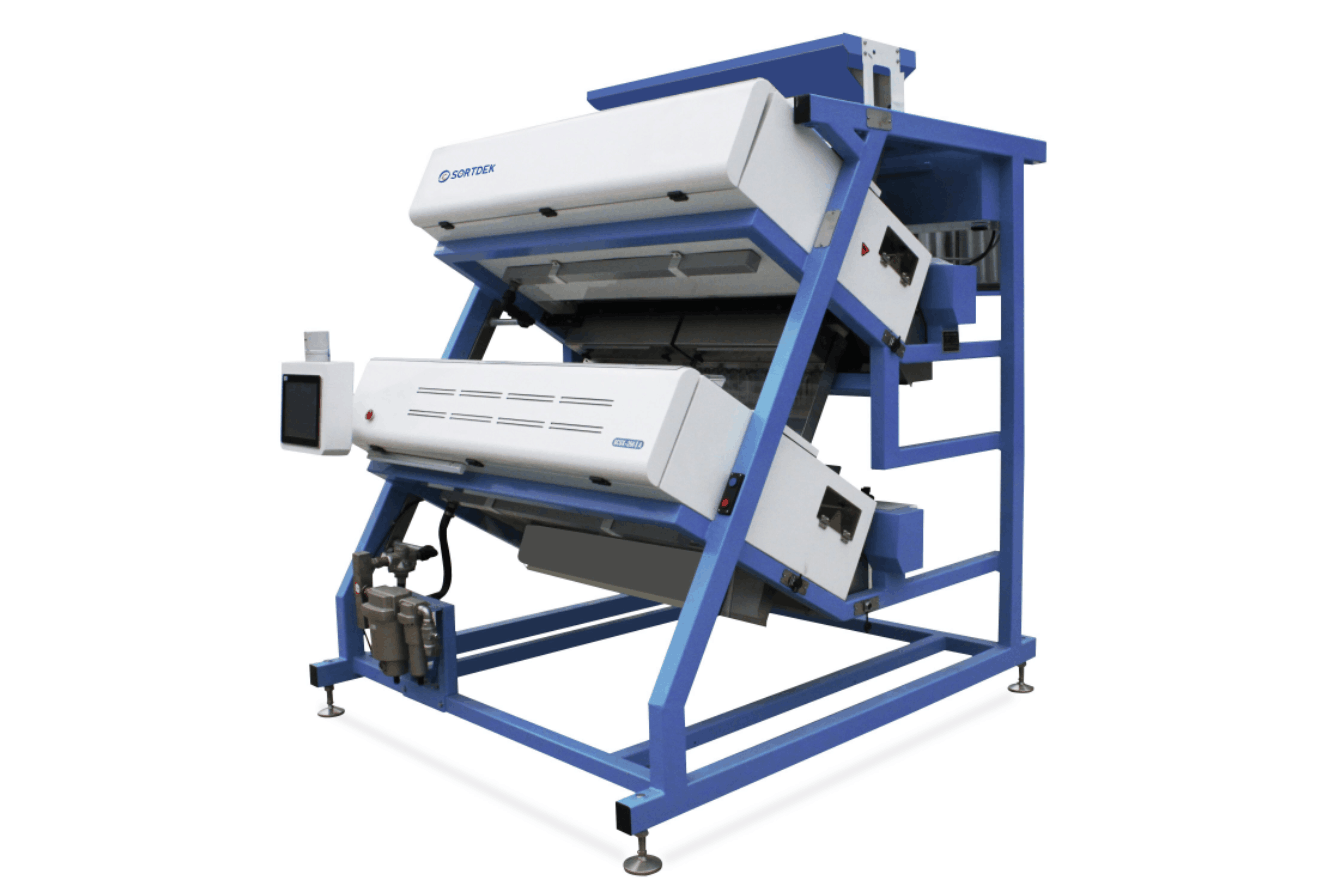 2). Flat chute with exclusive algorithm design for higher throughput, and direct dryer mouth can feed and sort.
