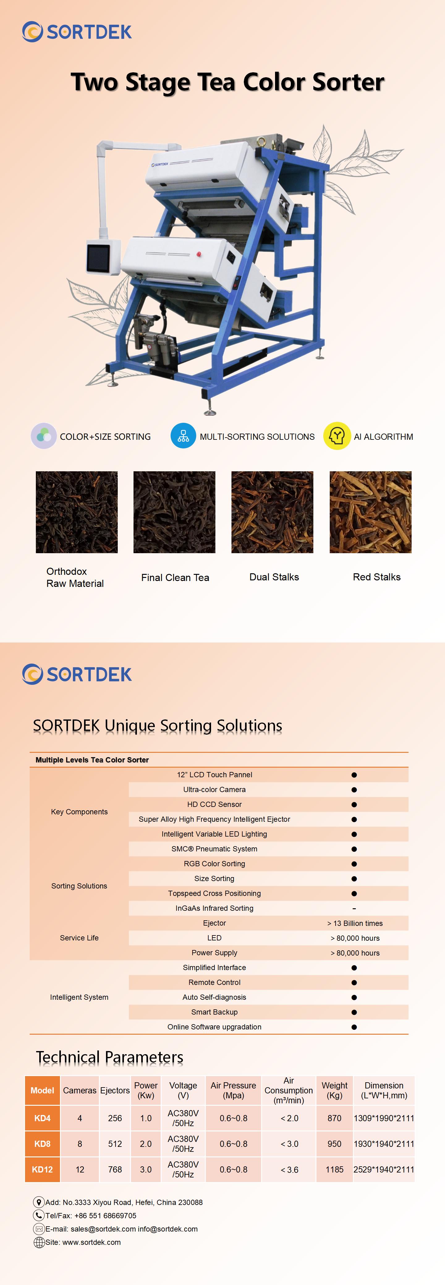 DOUBLE STAGE TEA COLOR SORTER FEATURES: